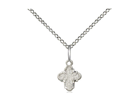 Embrace your faith with timeless elegance. This exquisite Sterling Silver 4-Way Necklace, measuring 3/8 x 1/4, is meticulously handcrafted in the USA by Bliss, a renowned name in religious jewelry. The durable 18-inch Sterling Silver curb chain gracefully drapes with a secure lobster clasp for a comfortable, everyday wear.