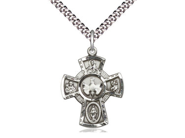 Embrace your faith with timeless elegance. This exquisite Sterling Silver 5-Way Necklace, measuring 1 x 3/4, is meticulously handcrafted in the USA by Bliss, a renowned name in religious jewelry. The durable 24-inch Sterling Silver curb chain gracefully drapes with a secure lobster clasp for a comfortable, everyday wear.