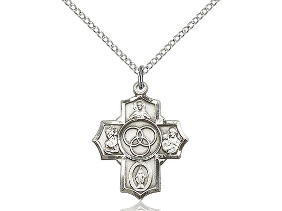 Embrace your faith with timeless elegance. This exquisite Sterling Silver New Family 5-Way Necklace, measuring 7/8 x 3/4, is meticulously handcrafted in the USA by Bliss, a renowned name in religious jewelry. The durable 18-inch Sterling Silver curb chain gracefully drapes with a secure lobster clasp for a comfortable, everyday wear.