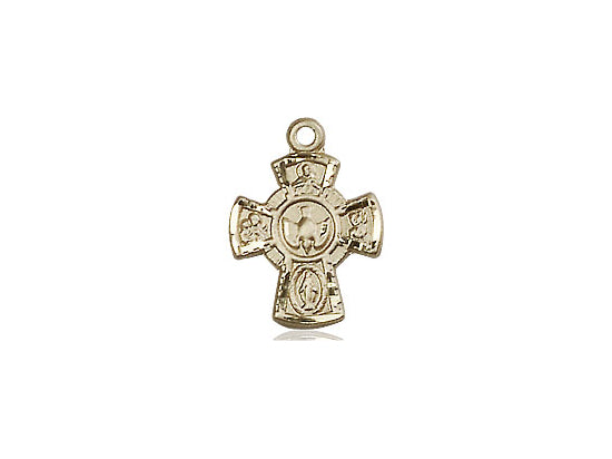 Embrace your faith with timeless elegance. This exquisite 14KT Gold 5-Way Pendant, measuring 5/8 x 3/8, is meticulously handcrafted in the USA by Bliss, a renowned name in religious jewelry. The durable -inch 14KT Gold curb chain gracefully drapes with a secure lobster clasp for a comfortable, everyday wear.