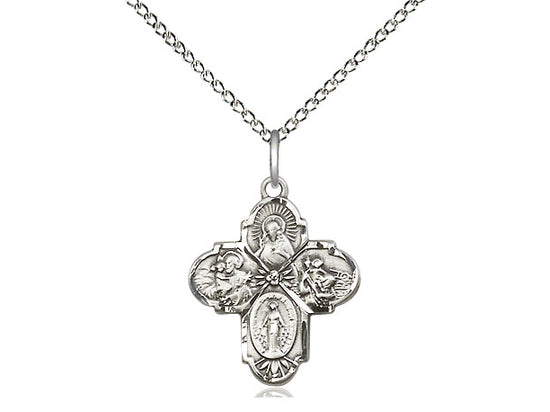 Embrace your faith with timeless elegance. This exquisite Sterling Silver 4-Way Necklace, measuring 3/4 x 5/8, is meticulously handcrafted in the USA by Bliss, a renowned name in religious jewelry. The durable 18-inch Sterling Silver curb chain gracefully drapes with a secure lobster clasp for a comfortable, everyday wear.