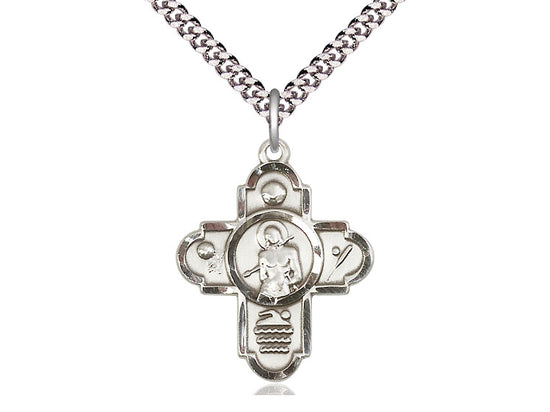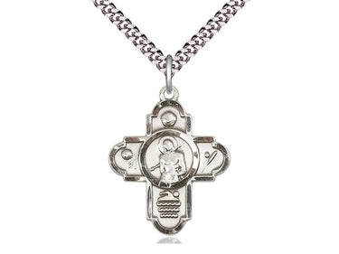 Sterling Silver 5-Way St Sebastian/Sports Pendant Necklace 1 X 7/8 - 24 Inch Chain