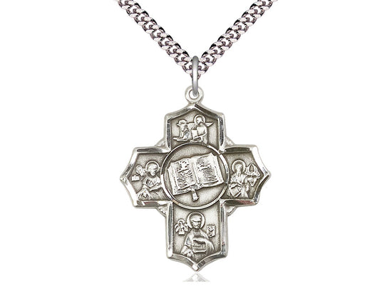 Large Sterling Silver Apostle 5-Way Pendant Necklace 1 1/4 X 1 - 24 Inch Chain