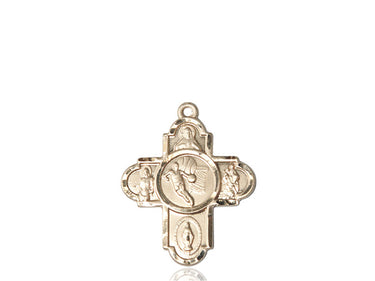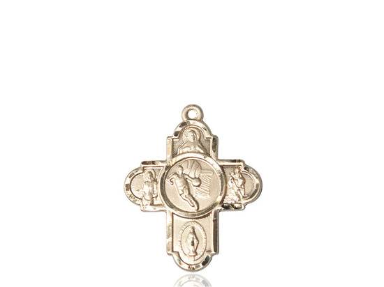 Embrace your faith with timeless elegance. This exquisite 14KT Gold 5-Way / Basketball Pendant, measuring 1 1/8 X 1 5/8, is meticulously handcrafted in the USA by Bliss, a renowned name in religious jewelry. The durable -inch 14KT Gold curb chain gracefully drapes with a secure lobster clasp for a comfortable, everyday wear.