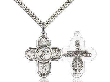 Embrace your faith with timeless elegance. This exquisite Sterling Silver 5-Way Ice Hockey Necklace, measuring 1 X 1 5/8, is meticulously handcrafted in the USA by Bliss, a renowned name in religious jewelry. The durable 24-inch Sterling Silver curb chain gracefully drapes with a secure lobster clasp for a comfortable, everyday wear.