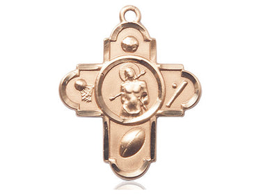 Embrace your faith with timeless elegance. This exquisite 14KT Gold 5-Way/St. Sebastian Pendant, measuring 1 1/8 x 1, is meticulously handcrafted in the USA by Bliss, a renowned name in religious jewelry. The durable -inch 14KT Gold curb chain gracefully drapes with a secure lobster clasp for a comfortable, everyday wear.