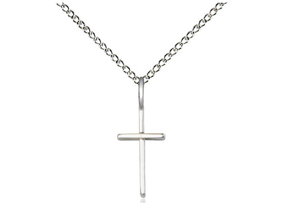 Small Sterling Silver Cross Pendant Necklace 1/2 x 1/4 - 18 Inch Chain