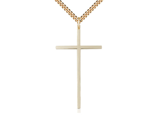 Embrace your faith with timeless elegance. This exquisite Gold Filled Cross Necklace, measuring 1 7/8 x 1, is meticulously handcrafted in the USA by Bliss, a renowned name in religious jewelry. The durable 24-inch Gold Filled curb chain gracefully drapes with a secure lobster clasp for a comfortable, everyday wear.