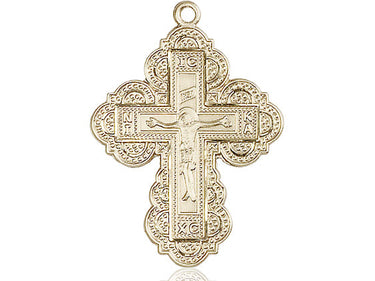 Exquisite 14KT Gold Irene Cross Pendant (1 1/4 x 7/8) on Chain with Lobster Clasp - Handmade in the USA by Bliss