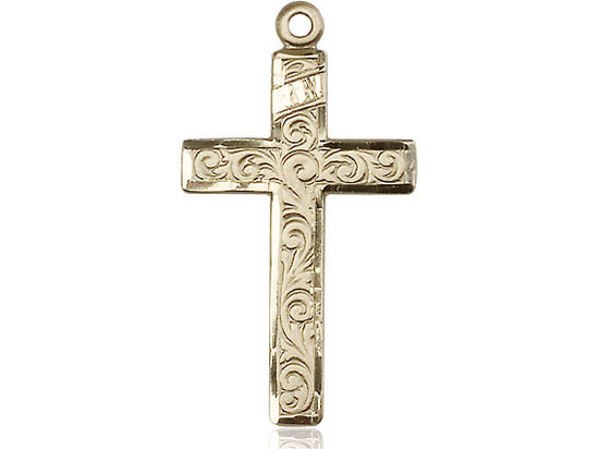Embrace your faith with timeless elegance. This exquisite 14KT Gold Cross Pendant, measuring 1 1/4 x 3/4, is meticulously handcrafted in the USA by Bliss, a renowned name in religious jewelry. The durable -inch 14KT Gold curb chain gracefully drapes with a secure lobster clasp for a comfortable, everyday wear.