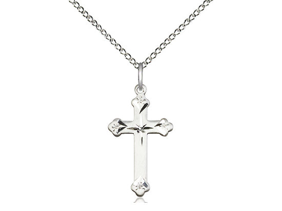 Embrace your faith with timeless elegance. This exquisite Sterling Silver Cross Necklace, measuring 3/4 x 1/2, is meticulously handcrafted in the USA by Bliss, a renowned name in religious jewelry. The durable 18-inch Sterling Silver curb chain gracefully drapes with a secure lobster clasp for a comfortable, everyday wear.