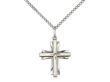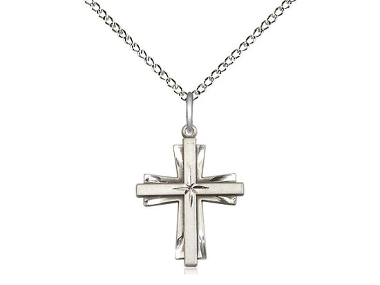 Embrace your faith with timeless elegance. This exquisite Sterling Silver Cross Necklace, measuring 3/4 X 1/2, is meticulously handcrafted in the USA by Bliss, a renowned name in religious jewelry. The durable 18-inch Sterling Silver curb chain gracefully drapes with a secure lobster clasp for a comfortable, everyday wear.