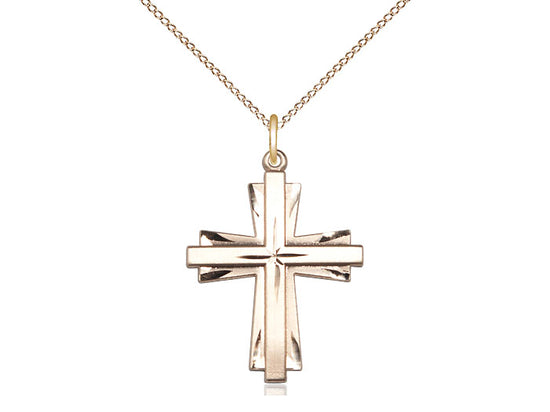 Embrace your faith with timeless elegance. This exquisite Gold Filled Cross Necklace, measuring 1 X 3/4, is meticulously handcrafted in the USA by Bliss, a renowned name in religious jewelry. The durable 18-inch Gold Filled curb chain gracefully drapes with a secure lobster clasp for a comfortable, everyday wear.