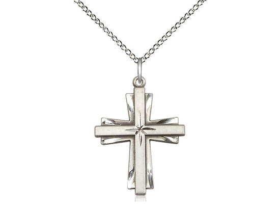 Embrace your faith with timeless elegance. This exquisite Sterling Silver Cross Necklace, measuring 1 X 3/4, is meticulously handcrafted in the USA by Bliss, a renowned name in religious jewelry. The durable 18-inch Sterling Silver curb chain gracefully drapes with a secure lobster clasp for a comfortable, everyday wear.