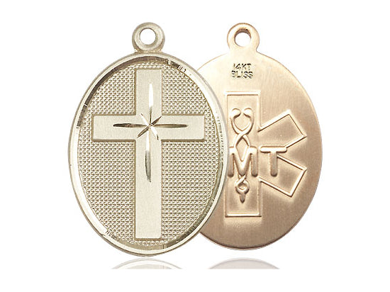 14kt Solid Gold Cross / Emt Medal 1 1/8 x 3/4