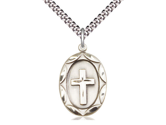 Sterling Silver Cross Pendant Necklace 1 x 5/8 - 24 Inch Chain