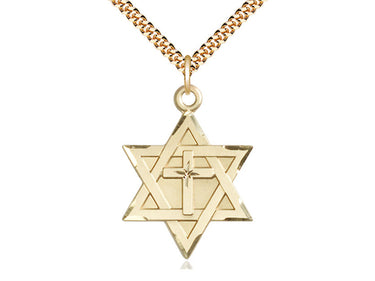Large 14kt Gold Filled Star of David W/ Cross Pendant Necklace 1 1/4 x 7/8 - 24 Inch Chain