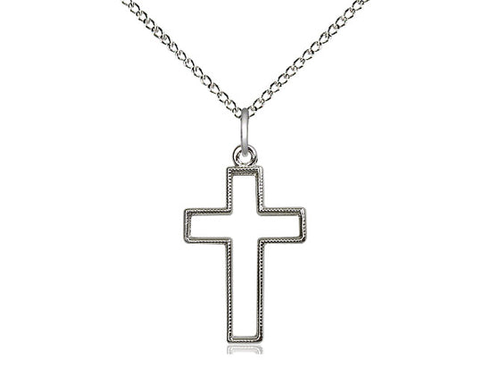 Embrace your faith with timeless elegance. This exquisite Sterling Silver Cross Necklace, measuring 7/8 x 1/2, is meticulously handcrafted in the USA by Bliss, a renowned name in religious jewelry. The durable 18-inch Sterling Silver curb chain gracefully drapes with a secure lobster clasp for a comfortable, everyday wear.