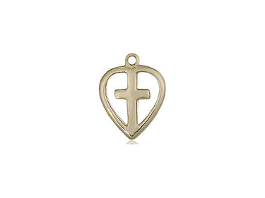 Small 14kt Solid Gold Heart / Cross Medal 1/2 x 3/8