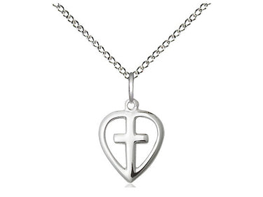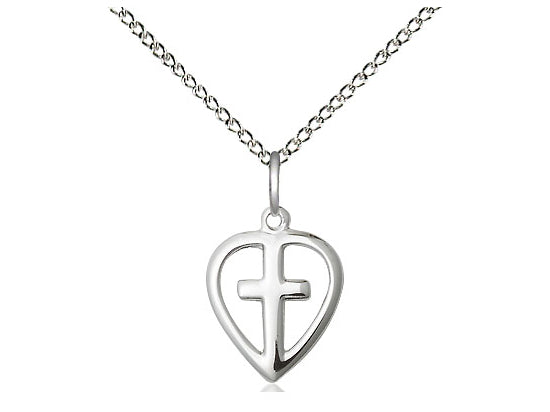 Embrace your faith with timeless elegance. This exquisite Sterling Silver Heart / Cross Necklace, measuring 1/2 x 3/8, is meticulously handcrafted in the USA by Bliss, a renowned name in religious jewelry. The durable 18-inch Sterling Silver curb chain gracefully drapes with a secure lobster clasp for a comfortable, everyday wear.