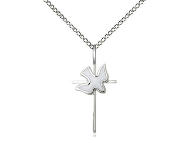 Sterling Silver Cross / Holy Spirit Pendant Necklace 3/4 x 3/8 - 18 Inch Chain