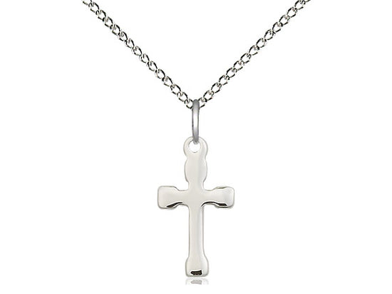 Small Sterling Silver Cross Pendant Necklace 5/8 x 3/8 - 18 Inch Chain