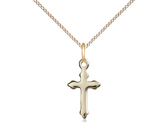 Small 14kt Gold Filled Cross Pendant Necklace 5/8 x 3/8 - 18 Inch Chain