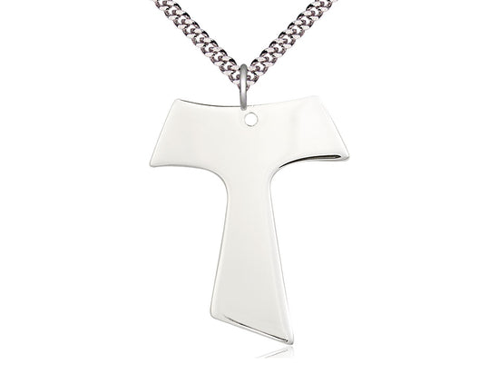 Large Sterling Silver Tau Cross Pendant Necklace 1 1/2 x 1 1/4 - 24 Inch Chain