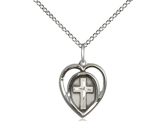 Embrace your faith with timeless elegance. This exquisite Sterling Silver Heart / Cross Necklace, measuring 5/8 x 1/2, is meticulously handcrafted in the USA by Bliss, a renowned name in religious jewelry. The durable 18-inch Sterling Silver curb chain gracefully drapes with a secure lobster clasp for a comfortable, everyday wear.