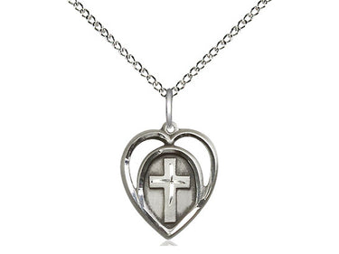 Small Sterling Silver Heart / Cross Pendant Necklace 5/8 x 1/2 - 18 Inch Chain