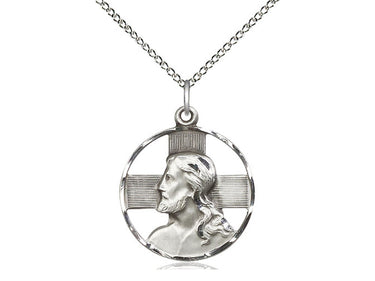Sterling Silver Head of Christ Pendant Necklace 7/8 x 3/4 - 18 Inch Chain