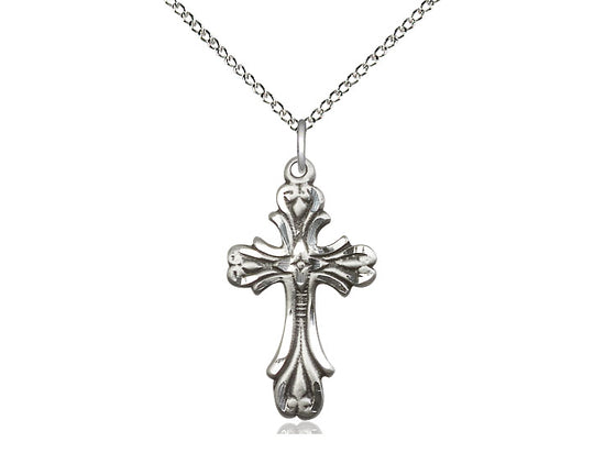 Embrace your faith with timeless elegance. This exquisite Sterling Silver Cross Necklace, measuring 1 x 1/2, is meticulously handcrafted in the USA by Bliss, a renowned name in religious jewelry. The durable 18-inch Sterling Silver curb chain gracefully drapes with a secure lobster clasp for a comfortable, everyday wear.