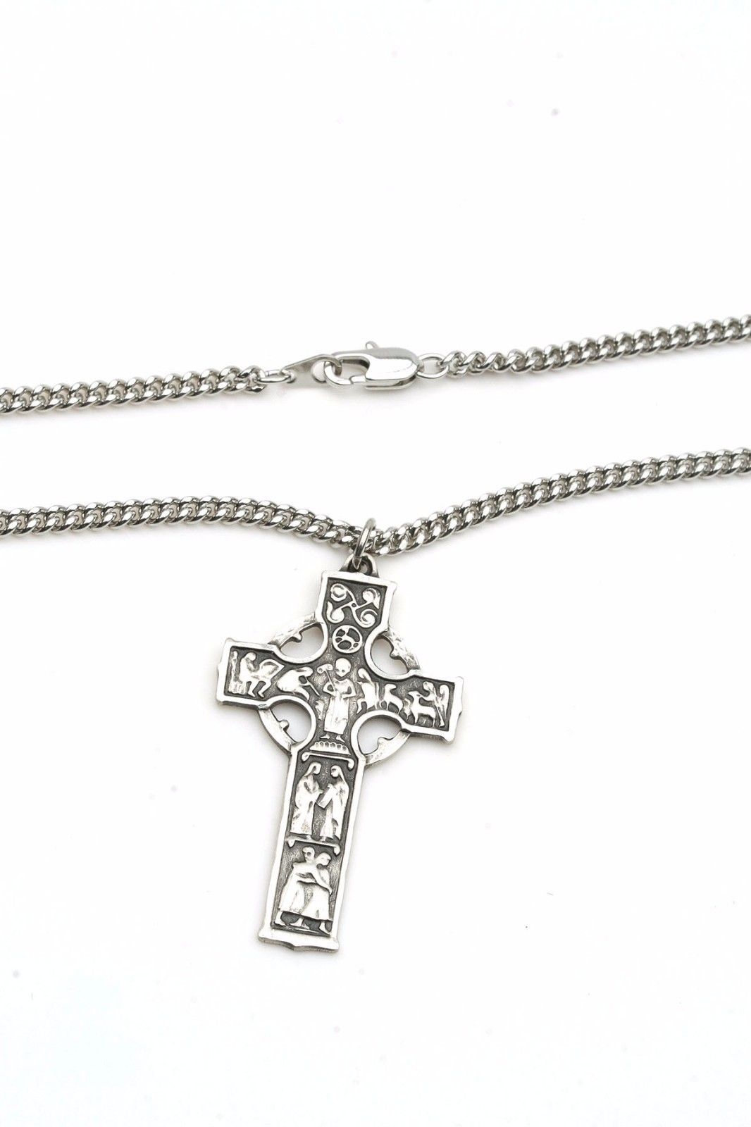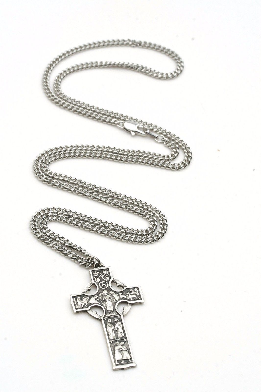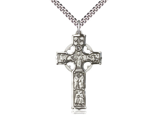 Large Sterling Silver Celtic Cross Pendant Necklace 1 5/8 x 7/8 - 24 Inch Chain