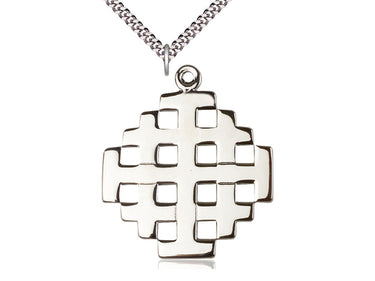 Embrace your faith with timeless elegance. This exquisite Sterling Silver Cross Necklace, measuring 1 3/4 x 1 1/2, is meticulously handcrafted in the USA by Bliss, a renowned name in religious jewelry. The durable 24-inch Sterling Silver curb chain gracefully drapes with a secure lobster clasp for a comfortable, everyday wear.