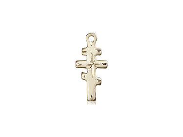 Embrace your faith with timeless elegance. This exquisite 14KT Gold Greek Orthadox Cross Pendant, measuring 5/8 x 1/4, is meticulously handcrafted in the USA by Bliss, a renowned name in religious jewelry. The durable -inch 14KT Gold curb chain gracefully drapes with a secure lobster clasp for a comfortable, everyday wear.