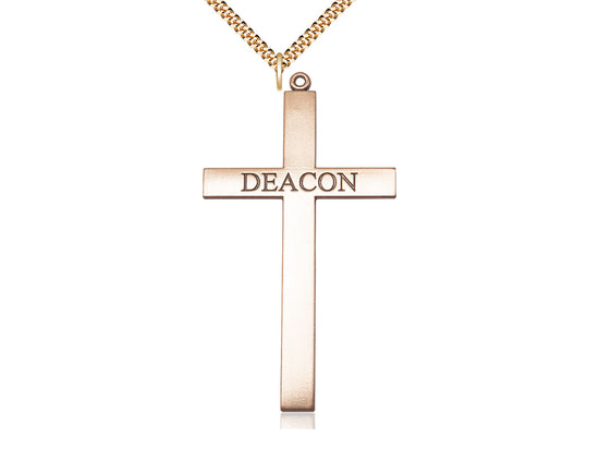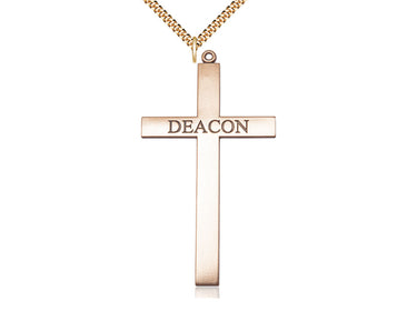 Embrace your faith with timeless elegance. This exquisite Gold Filled Deacon Cross Necklace, measuring 2 5/8 X 1 3/8, is meticulously handcrafted in the USA by Bliss, a renowned name in religious jewelry. The durable 24-inch Gold Filled curb chain gracefully drapes with a secure lobster clasp for a comfortable, everyday wear.