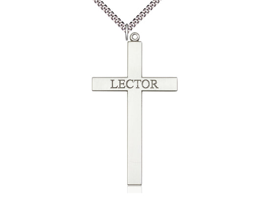 Extra Large Sterling Silver Lector Cross Pendant Necklace 2 5/8 X 1 3/8 - 24 Inch Chain