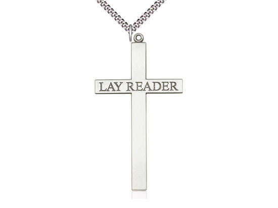 Embrace your faith with timeless elegance. This exquisite Sterling Silver Lay Reader Cross Necklace, measuring 2 5/8 X 1 3/8, is meticulously handcrafted in the USA by Bliss, a renowned name in religious jewelry. The durable 24-inch Sterling Silver curb chain gracefully drapes with a secure lobster clasp for a comfortable, everyday wear.