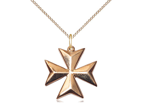 14kt Gold Filled Maltese Cross Pendant Necklace 3/4 X 5/8 - 18 Inch Chain