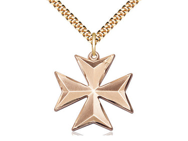 14kt Gold Filled Maltese Cross Pendant Necklace 7/8 X 7/8 - 24 Inch Chain