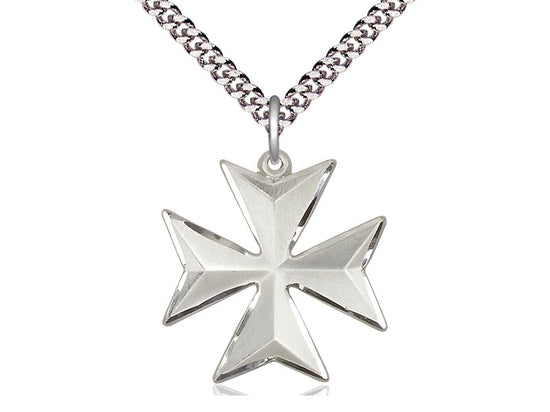 Sterling Silver Maltese Cross Pendant Necklace 7/8 X 7/8 - 24 Inch Chain