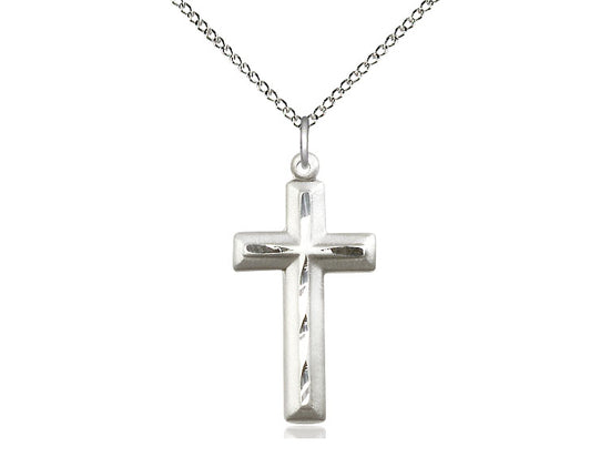 Embrace your faith with timeless elegance. This exquisite Sterling Silver Cross Necklace, measuring 1 1/8 x 1/2, is meticulously handcrafted in the USA by Bliss, a renowned name in religious jewelry. The durable 18-inch Sterling Silver curb chain gracefully drapes with a secure lobster clasp for a comfortable, everyday wear.