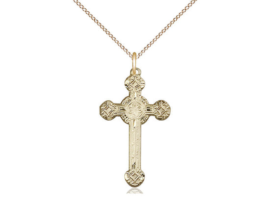 14kt Gold Filled Cross Pendant Necklace 1 x 5/8 - 18 Inch Chain