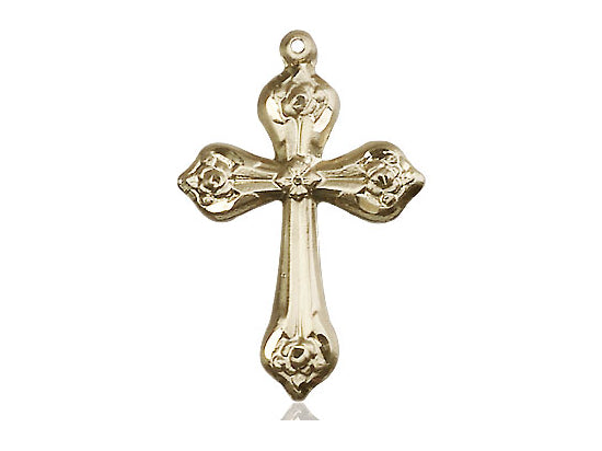 Embrace your faith with timeless elegance. This exquisite 14KT Gold Cross Pendant, measuring 1 x 5/8, is meticulously handcrafted in the USA by Bliss, a renowned name in religious jewelry. The durable -inch 14KT Gold curb chain gracefully drapes with a secure lobster clasp for a comfortable, everyday wear.
