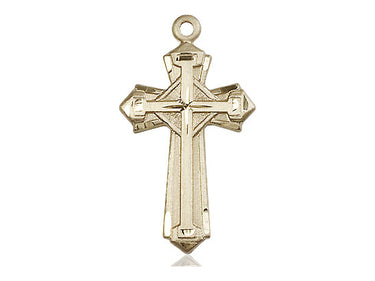 Embrace your faith with timeless elegance. This exquisite 14KT Gold Cross Pendant, measuring 1 1/8 x 5/8, is meticulously handcrafted in the USA by Bliss, a renowned name in religious jewelry. The durable -inch 14KT Gold curb chain gracefully drapes with a secure lobster clasp for a comfortable, everyday wear.