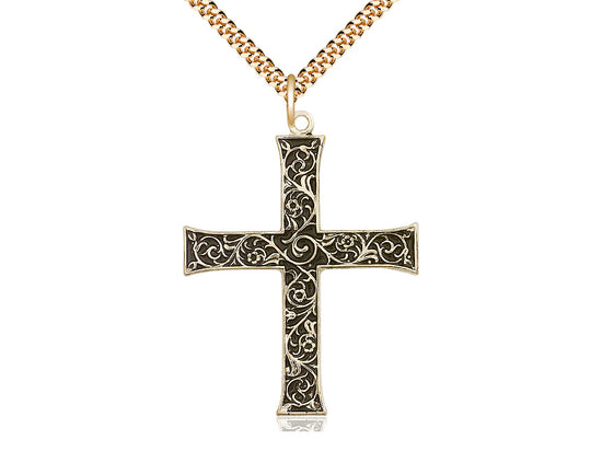 Large 14kt Gold Filled Cross Pendant Necklace 1 5/8 x 1 1/4 - 24 Inch Chain