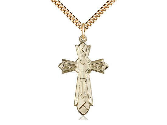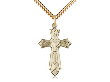 Large 14kt Gold Filled Mosaic Cross Pendant Necklace 1 3/8 x 7/8 - 24 Inch Chain