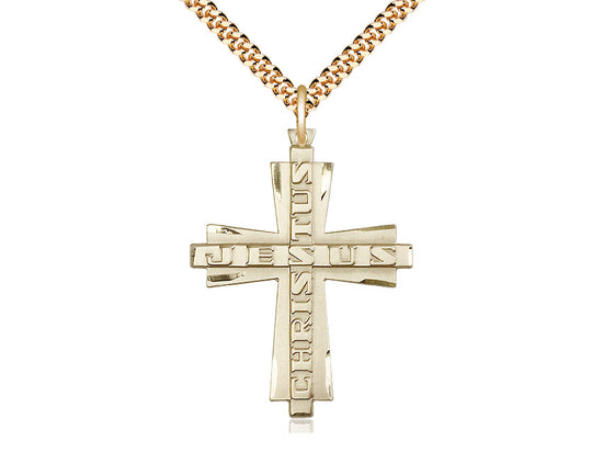 Large 14kt Gold Filled Jesus Christus Cross Pendant Necklace 1 3/8 x 1 - 24 Inch Chain