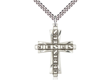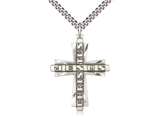 Large Sterling Silver Jesus Christus Cross Pendant Necklace 1 3/8 x 1 - 24 Inch Chain