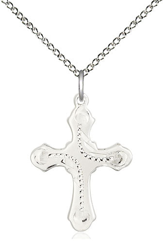 Embrace your faith with timeless elegance. This exquisite Sterling Silver Cross Necklace, measuring 7/8 x 5/8, is meticulously handcrafted in the USA by Bliss, a renowned name in religious jewelry. The durable 18-inch Sterling Silver curb chain gracefully drapes with a secure lobster clasp for a comfortable, everyday wear.